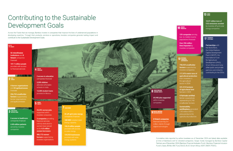 Bamboo is a signatory to the Operating Principles for Impact Management, a framework developed in collaboration with impact investing industry leaders and other stakeholders to ensure that impact considerations are integrated throughout the investment lifecycle. Our Impact Management System is aligned with these impact principles.